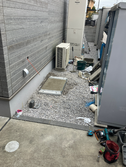 まずは蓄電池を設置する所へ下地を施工します。