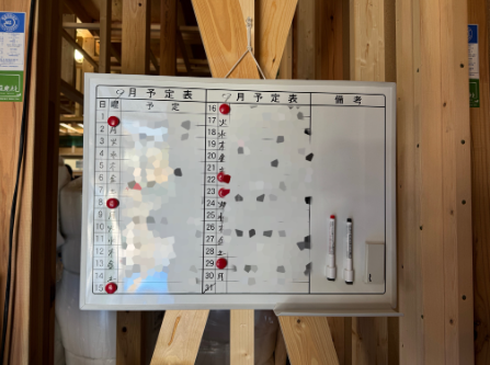 みなさんが目にできる所に、ホワイトボードも設置。